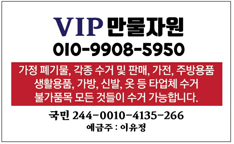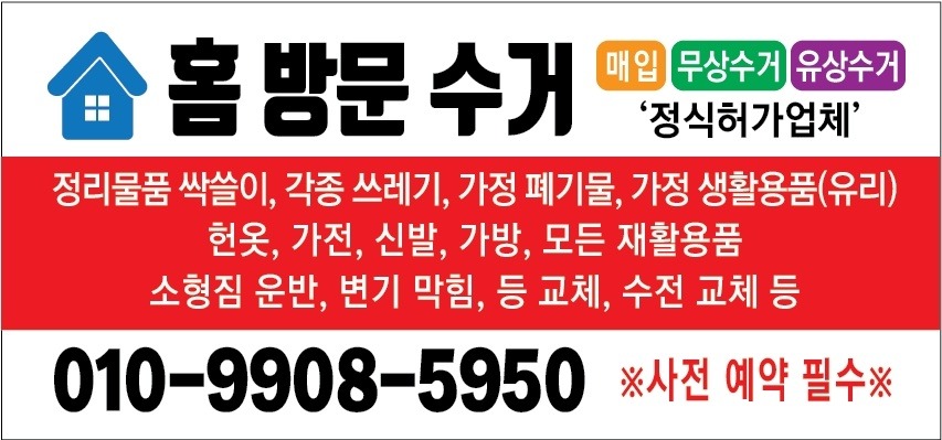 가정용폐기물 · 각종철거 · 헌옷수거(가방/신발/이불) · 재활용품