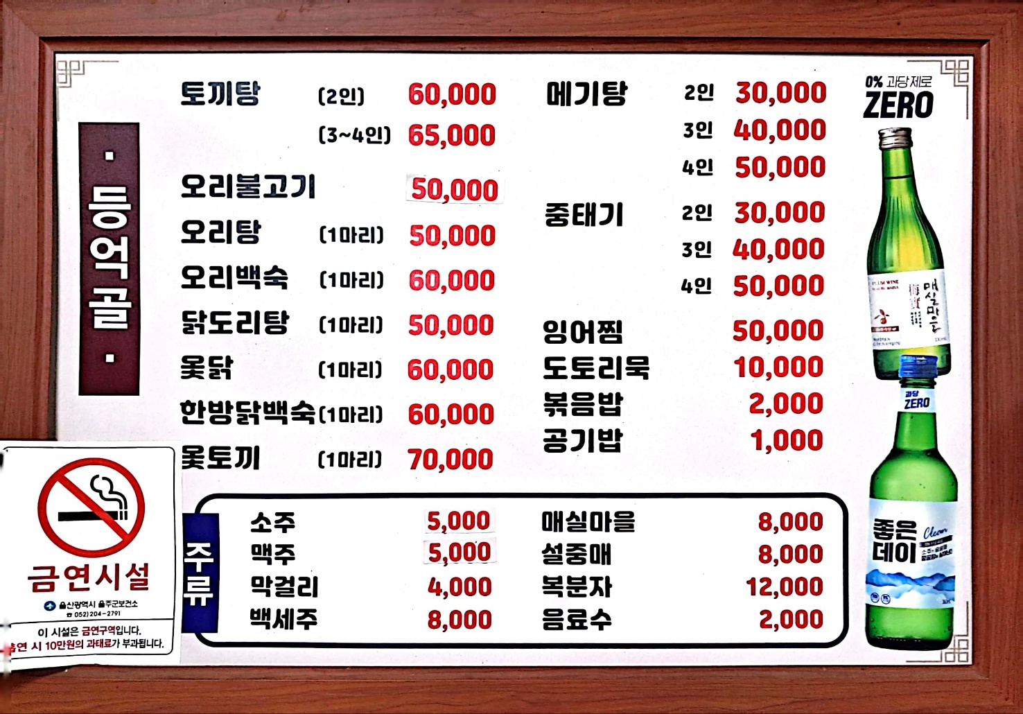 원산지 : 닭고기/오리고기(국내산), 쌀(국내산), 김치(국내산). 고춧가루(국내산)