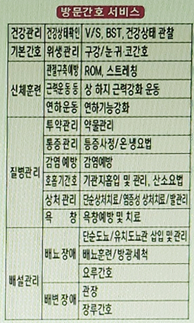 방문간호, 방문운동, 물리치료, 재활치료 등 다양한 서비스를 제공해 드리고 있으며,