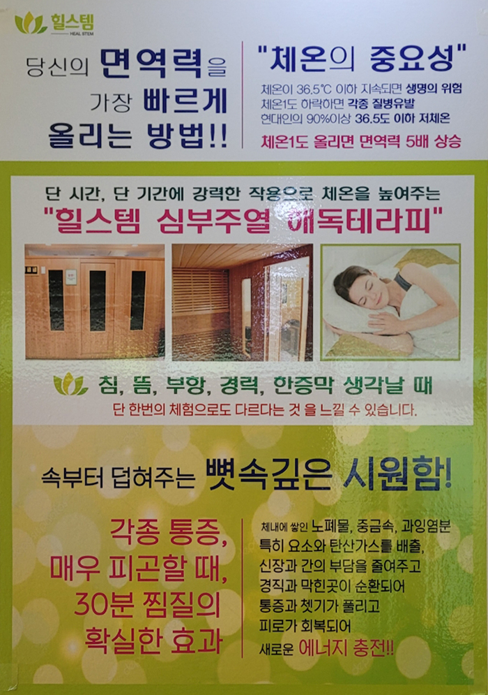 강력한 원적외선 파장의 주열작용을 통해 면역력을 높이고 자연치유를 이끌어내고 찜질과 잠자는 동안에 적극적인 치유가 진행됩니다.