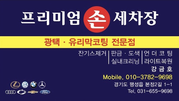 안녕하세요. 저희 프리미엄손세차장은 세차 및 자동차 외형 관리 전문 업체로