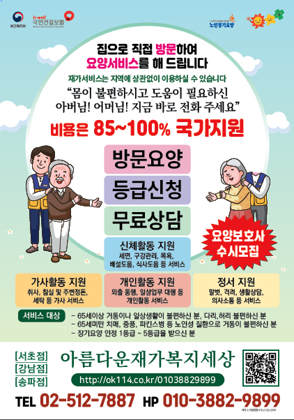 서초구에 위치한 저희아름다운재가복지센터는 오랜 경력의 전문 요양 보호사가