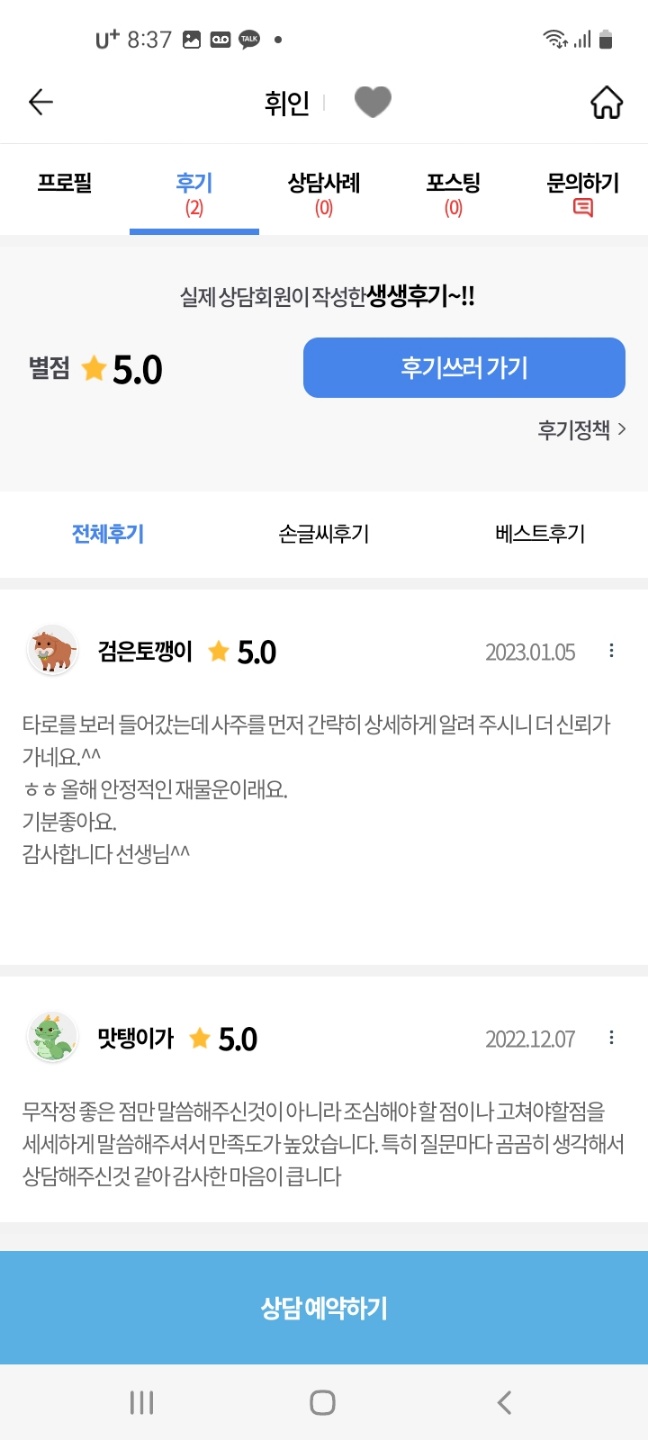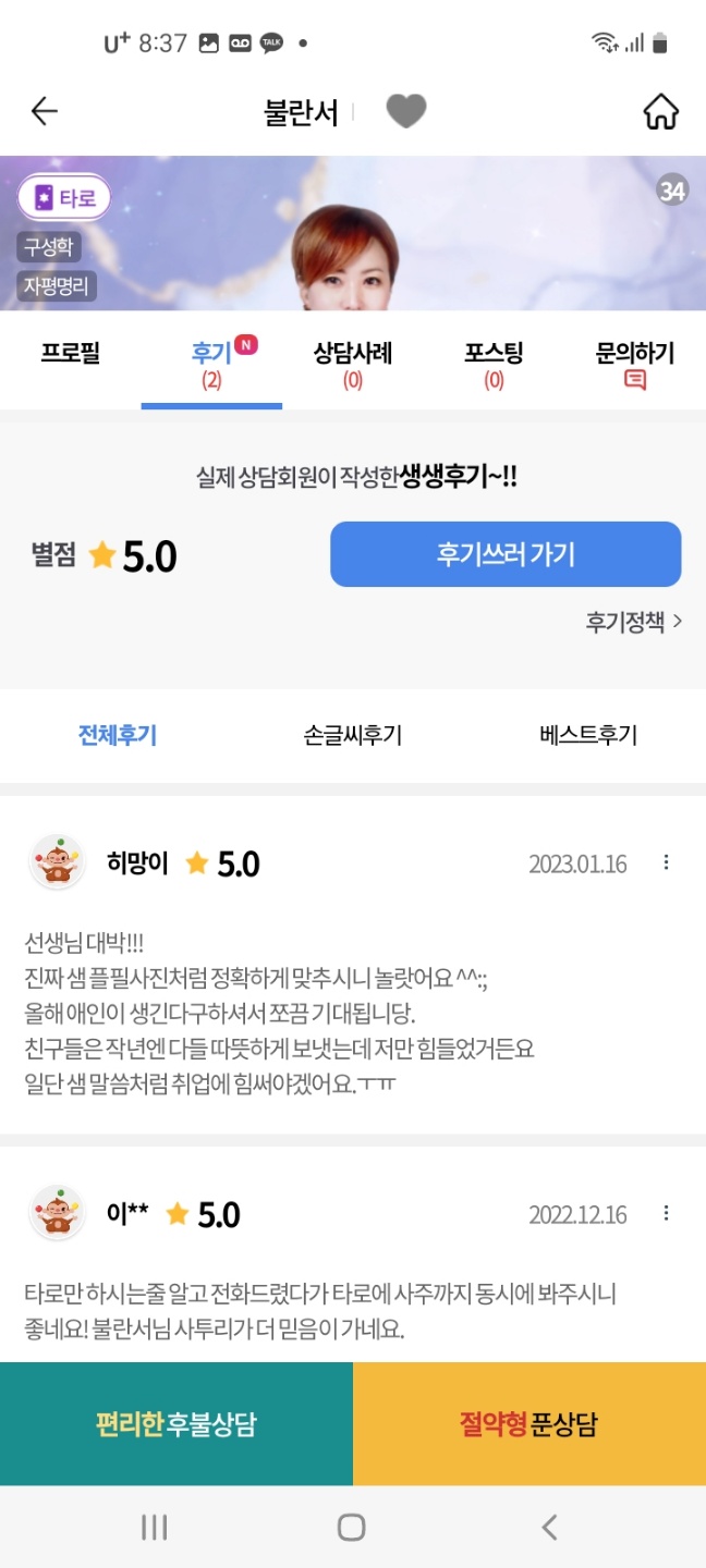 말 못 할 고민이 있으신 분들도 상담을 통해 인생의 해답을 얻어 가실 수 있도록