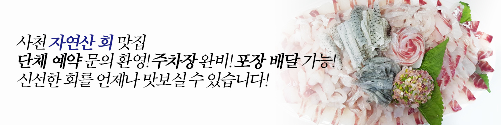 ◆ 예약 및 문의 : 010-4846-4858 (클릭! 전화 바로걸기) ◆ 영업시간 : 오전 10시 ~ 오후 10시까지 (연중무휴) ◆ 메뉴안내 : 모듬회 (2인,3인,4인) 자연산 제철회 (2인,3인), 방어회, 장어 양념구이 봄:도다리, 전어회 단체 예약 문의 환영! 주차장 완비! |