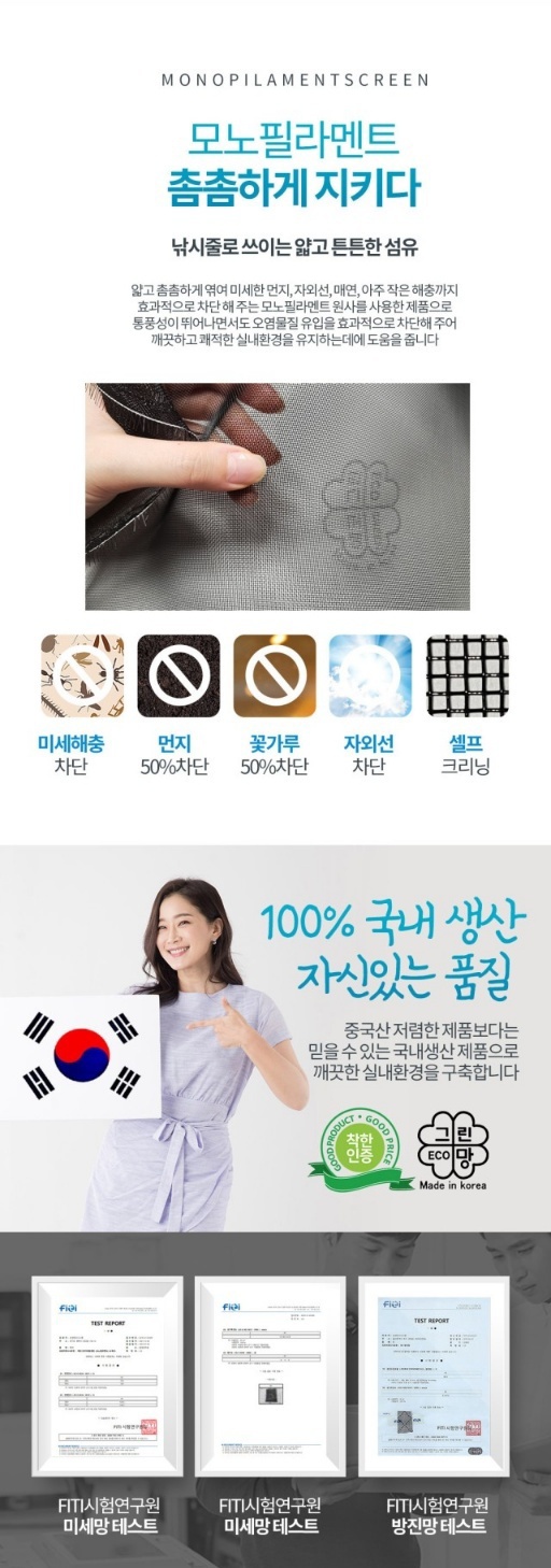 저희 에코그린방충망은 미세촘촘망, 스텐방충망, 알루미늄방충망