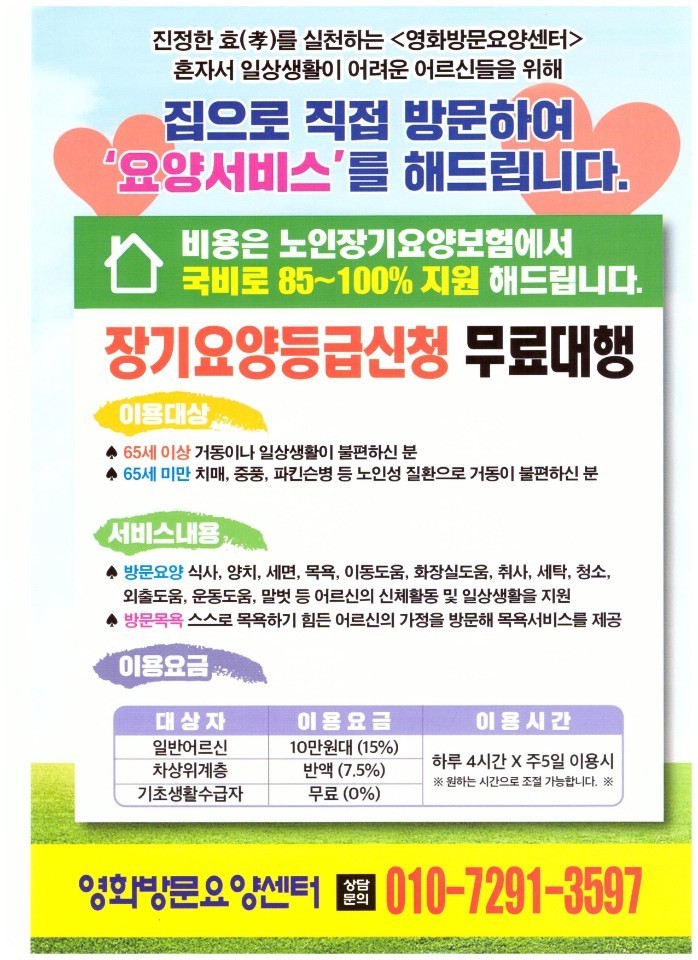 소중한 가족과 같은 어르신들을 위해 저희 영화방문요양센터에 방문해 보세요.
