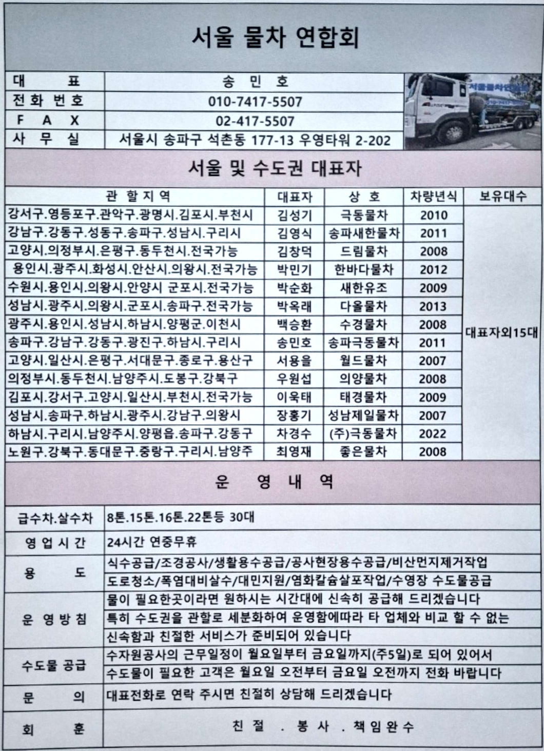 최선을 다하는 서울물차연합회를 믿고 맡겨주세요.