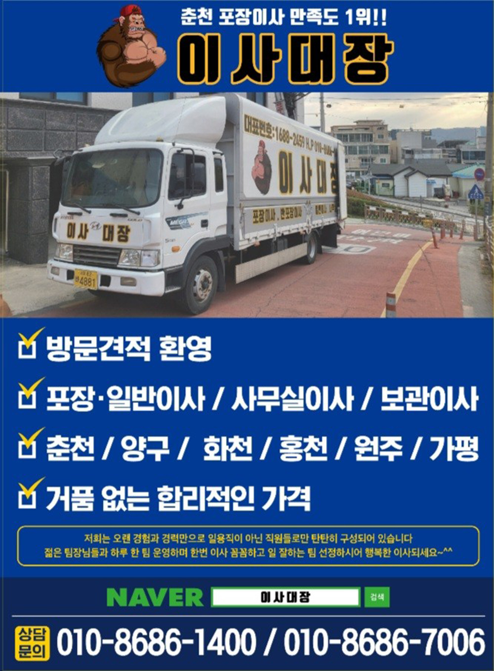 고객님을 우선으로 하는 만족도 높은 이사 서비스를 경험해 보세요. 감사합니다.
