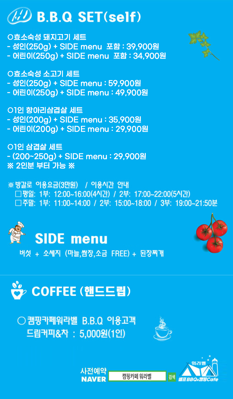 안녕하세요. 파주시에 위치한 저희 캠핑카페워라벨은