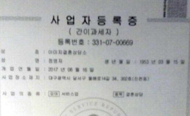 국내결혼중개업등록번호 : 제 대구-달서-국내-10-0004 호 | 사업자 등록번호 : 331-07-00669 | 대표자: 정영자
