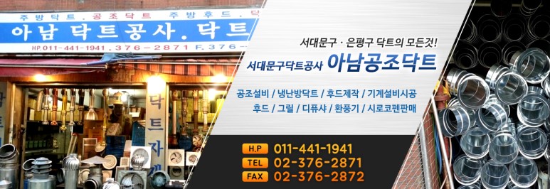 안녕하세요. 서울시 서대문구에 위치한 저희 아남공조닥트는 닥트 시공 및 냉난방 공조 전문 업체로서