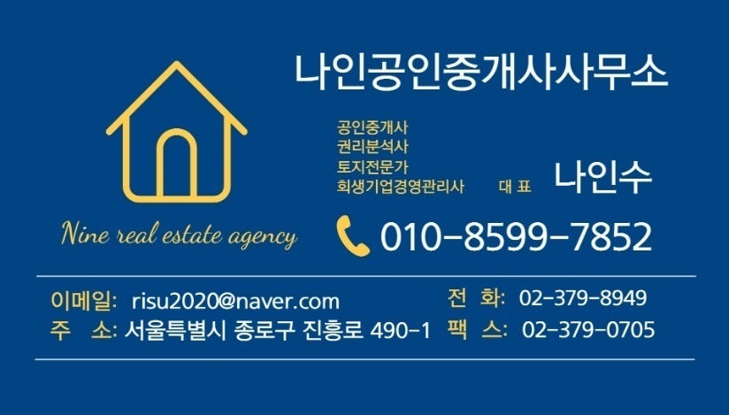 안녕하세요. 저희 나인공인중개사사무소는 주택, 빌딩, 상가, 공장 등의 다양한 매물을 체계적으로 관리하는 부동산 중개 전문 업체로서 오랜 경험과 노하우로 신뢰도 높은 중개 서비스를 제공해 드리고 있습니다.
