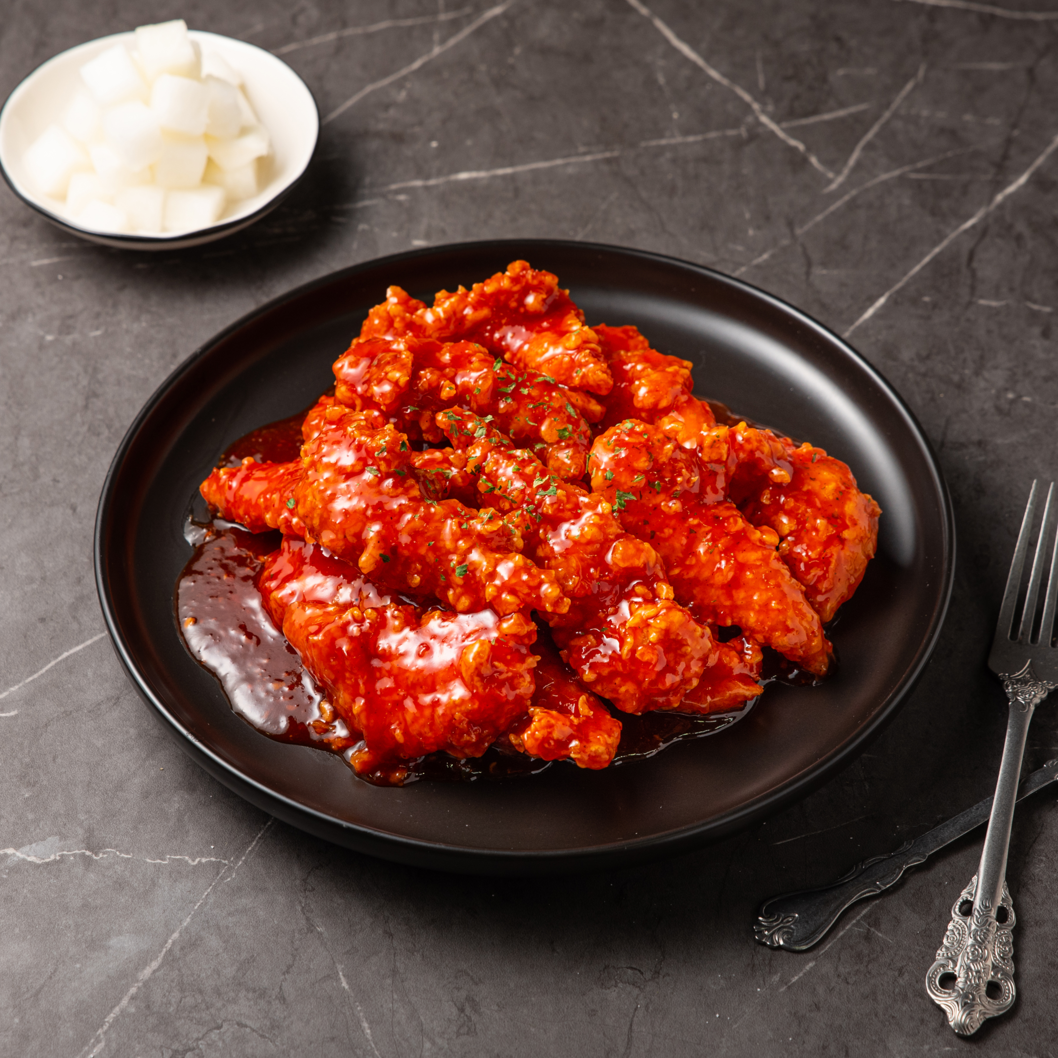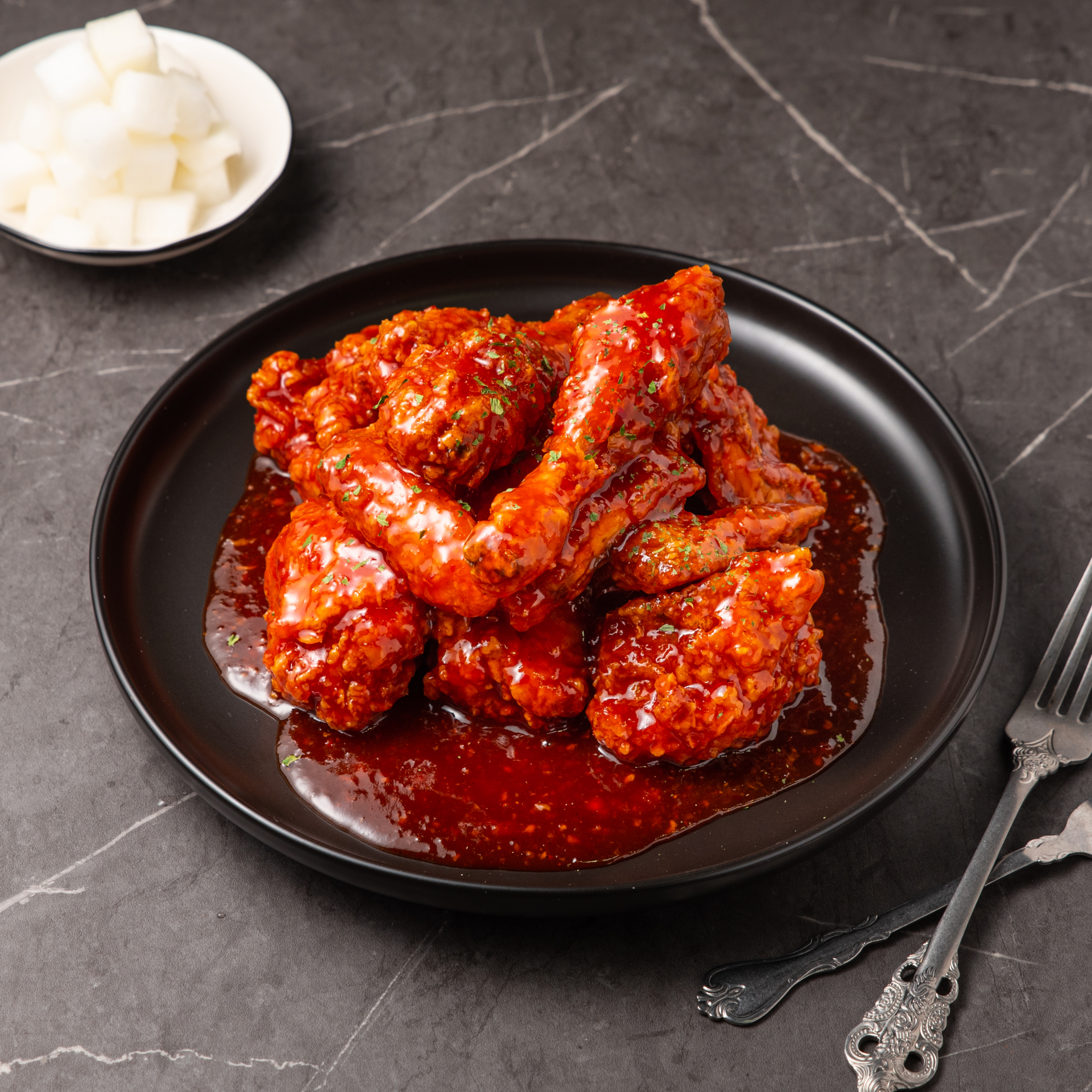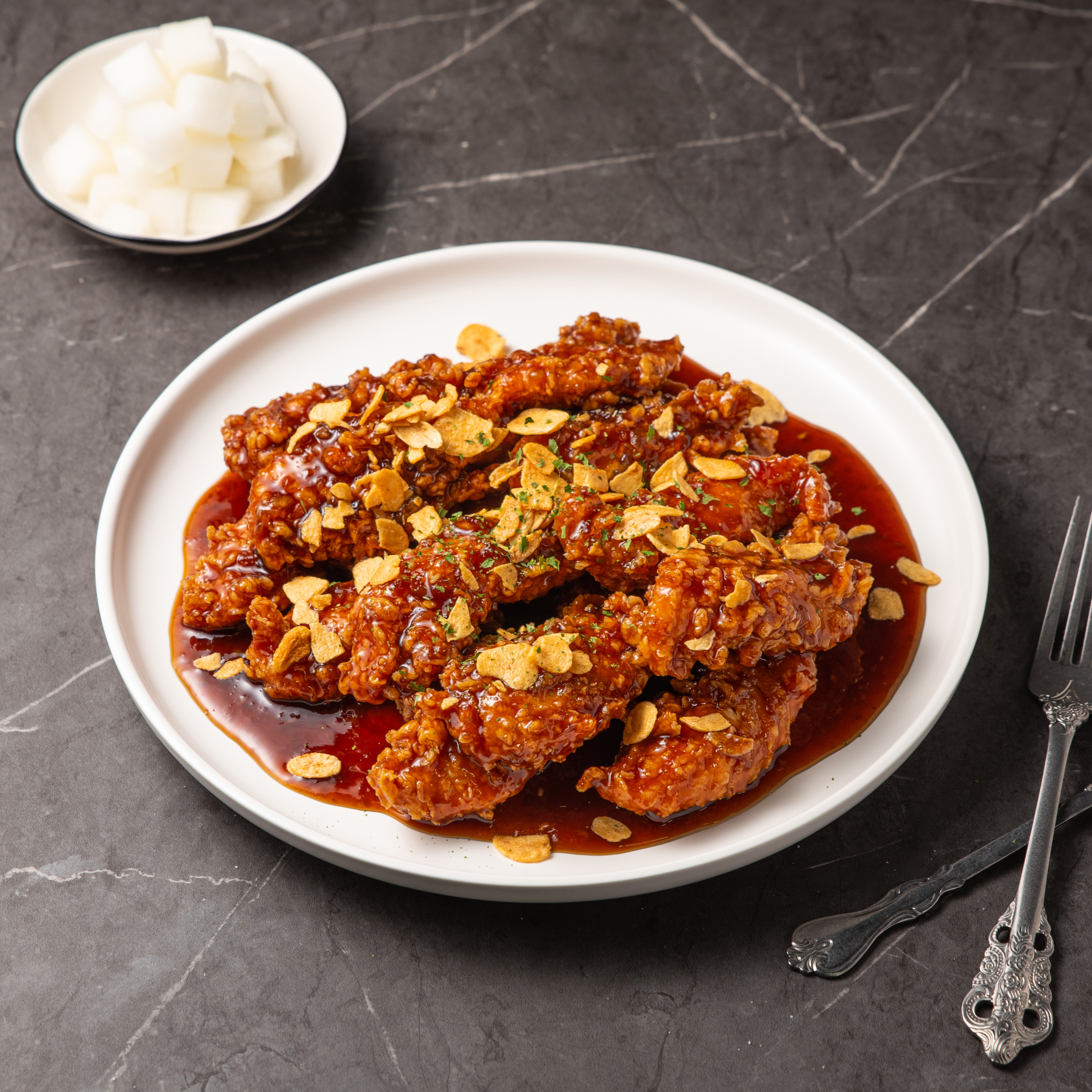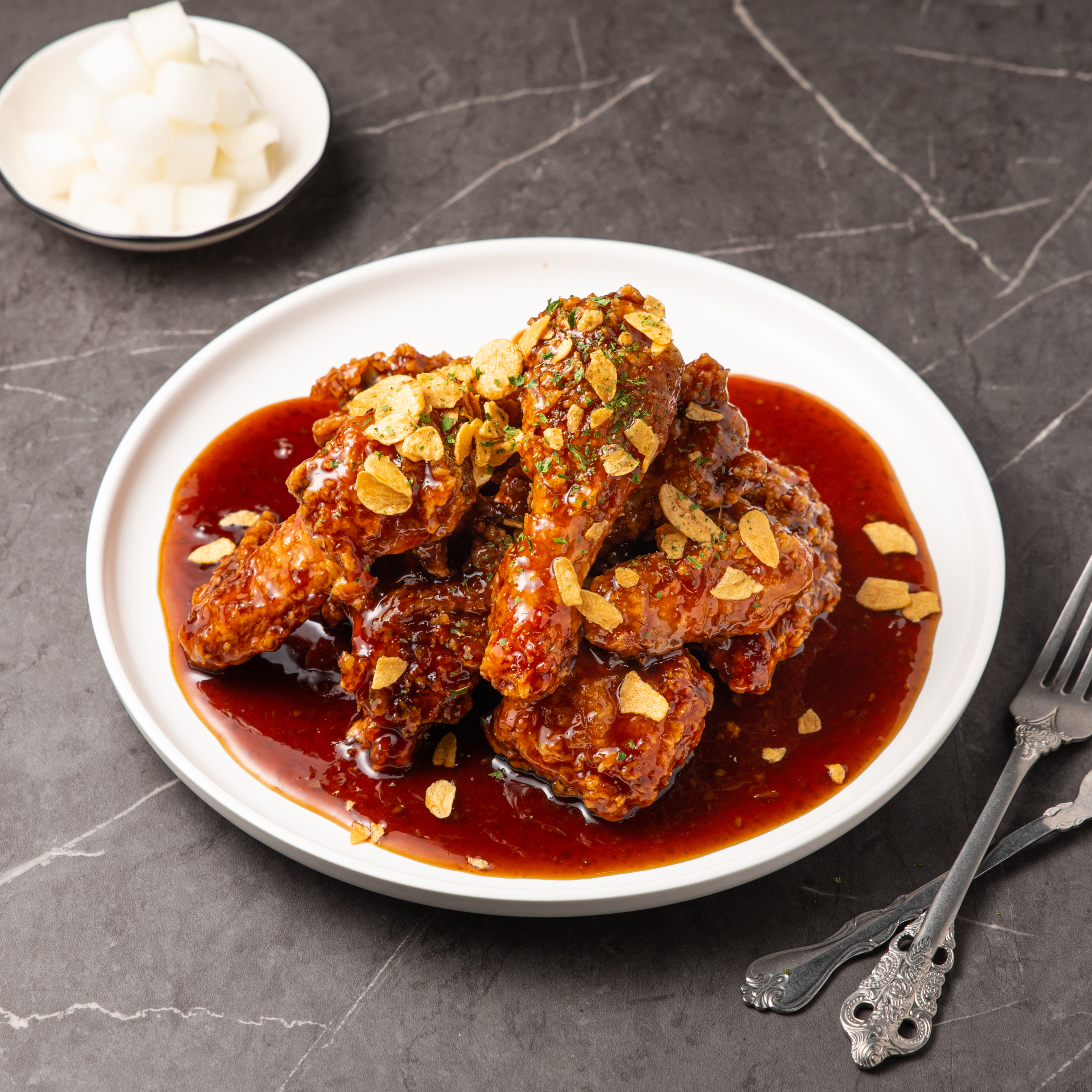 특별한 비법 소스와 함께 조리해 더욱 맛있고 바삭한 식감을 자랑합니다.