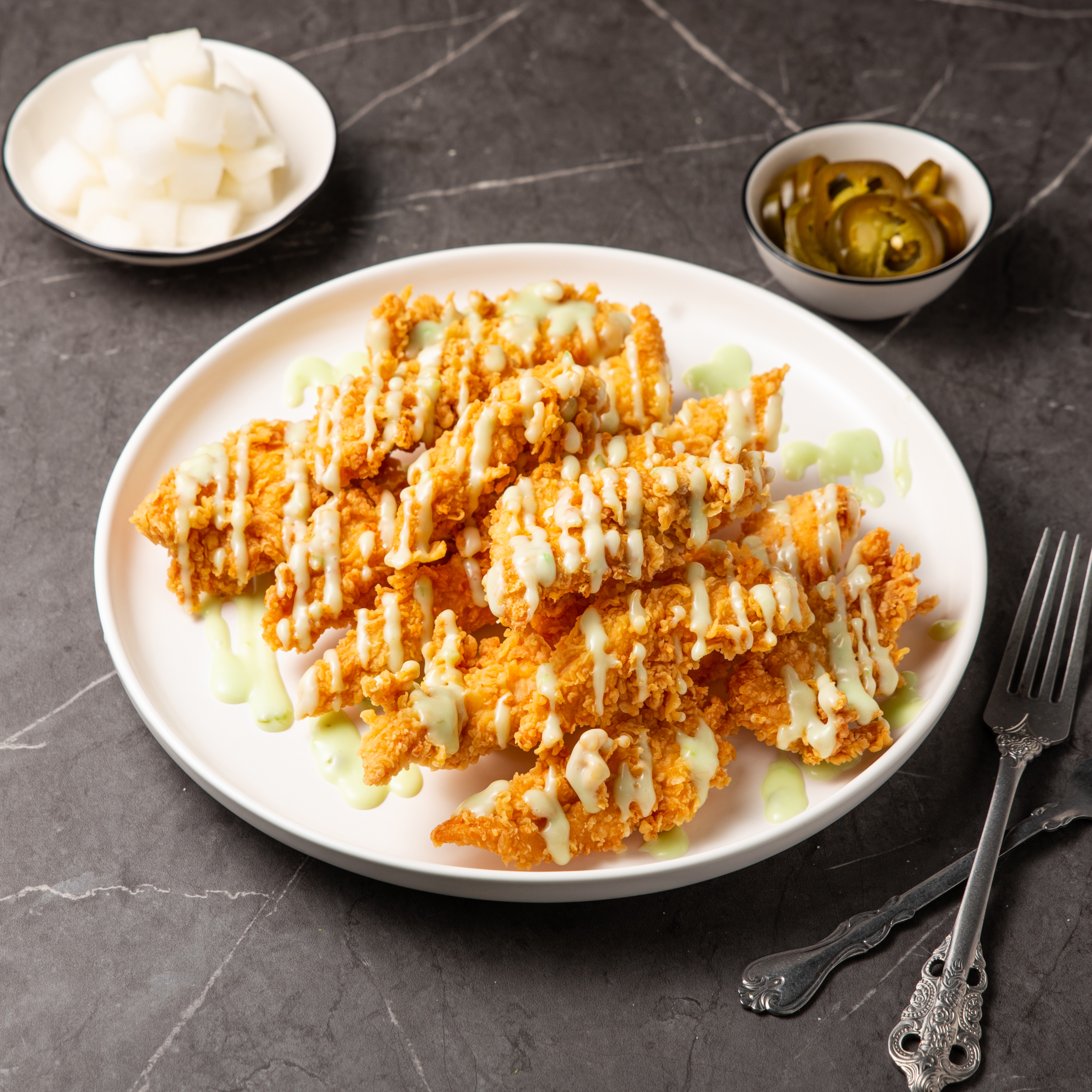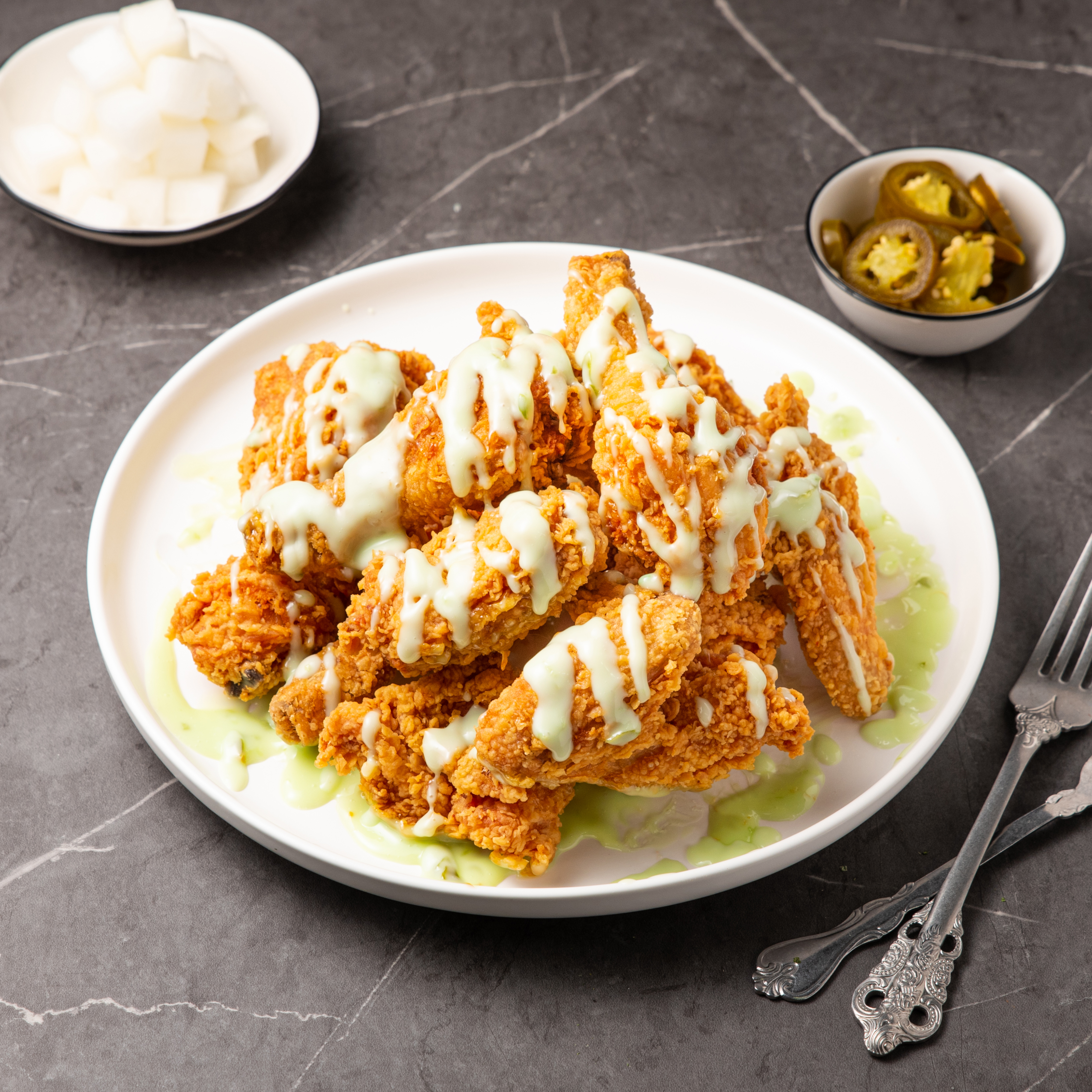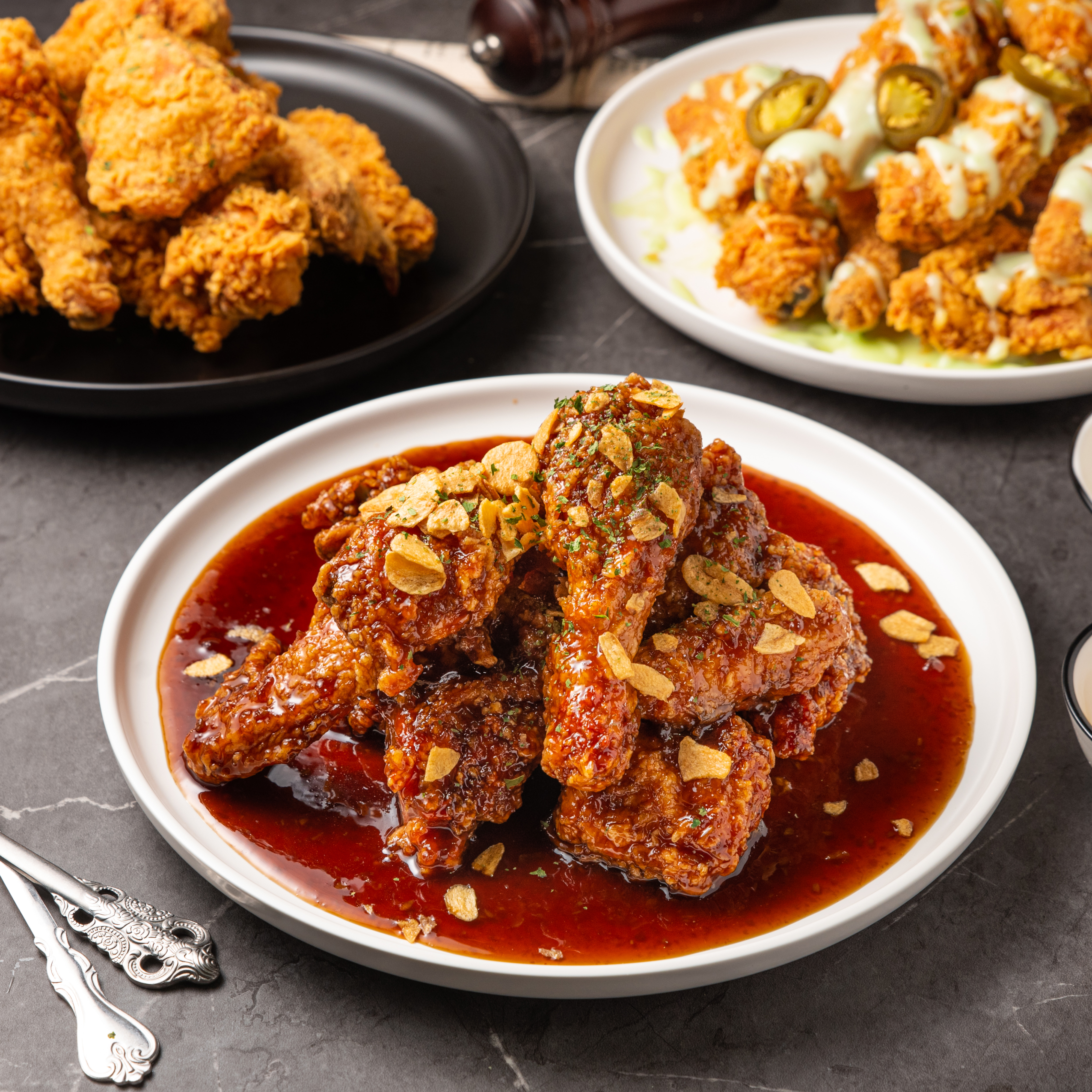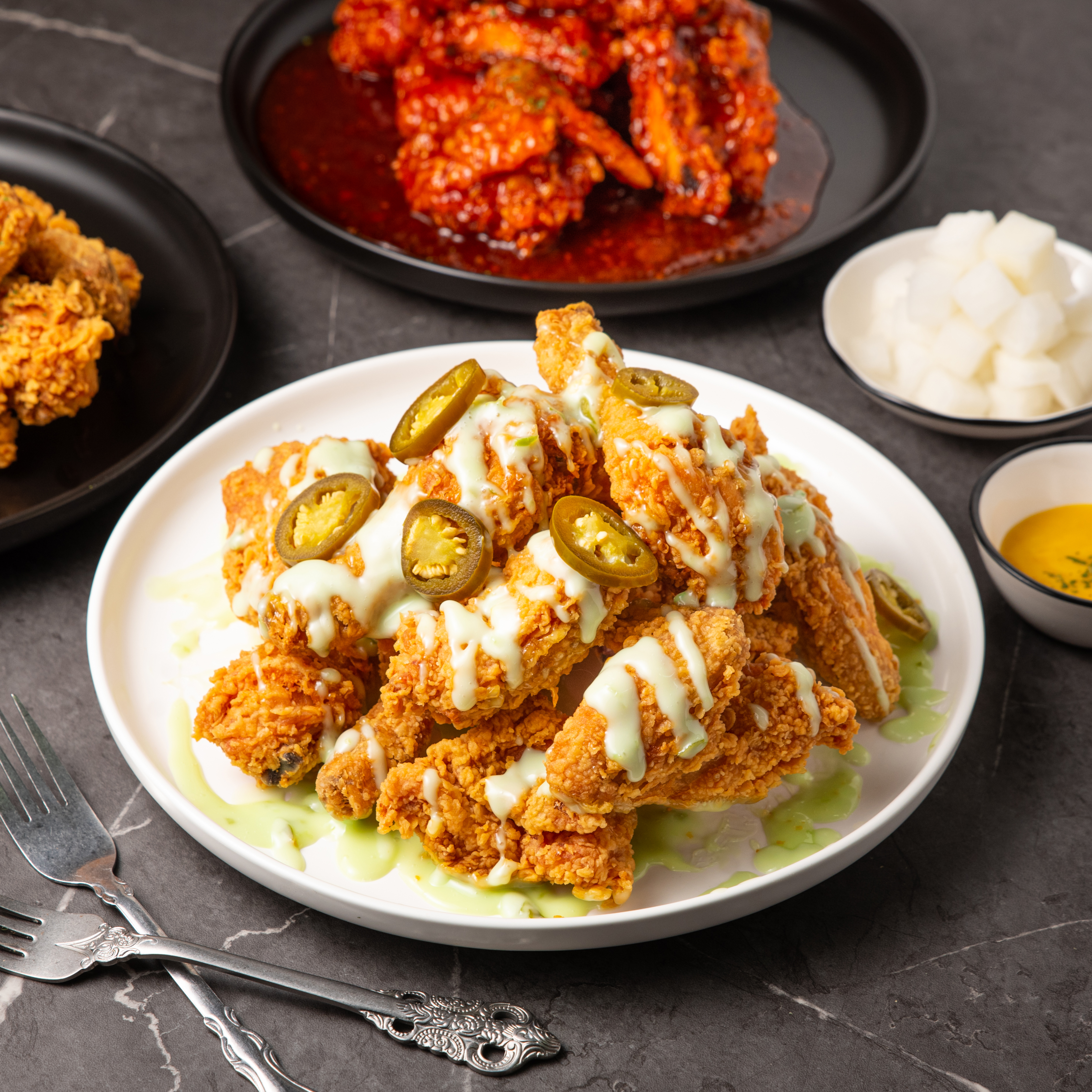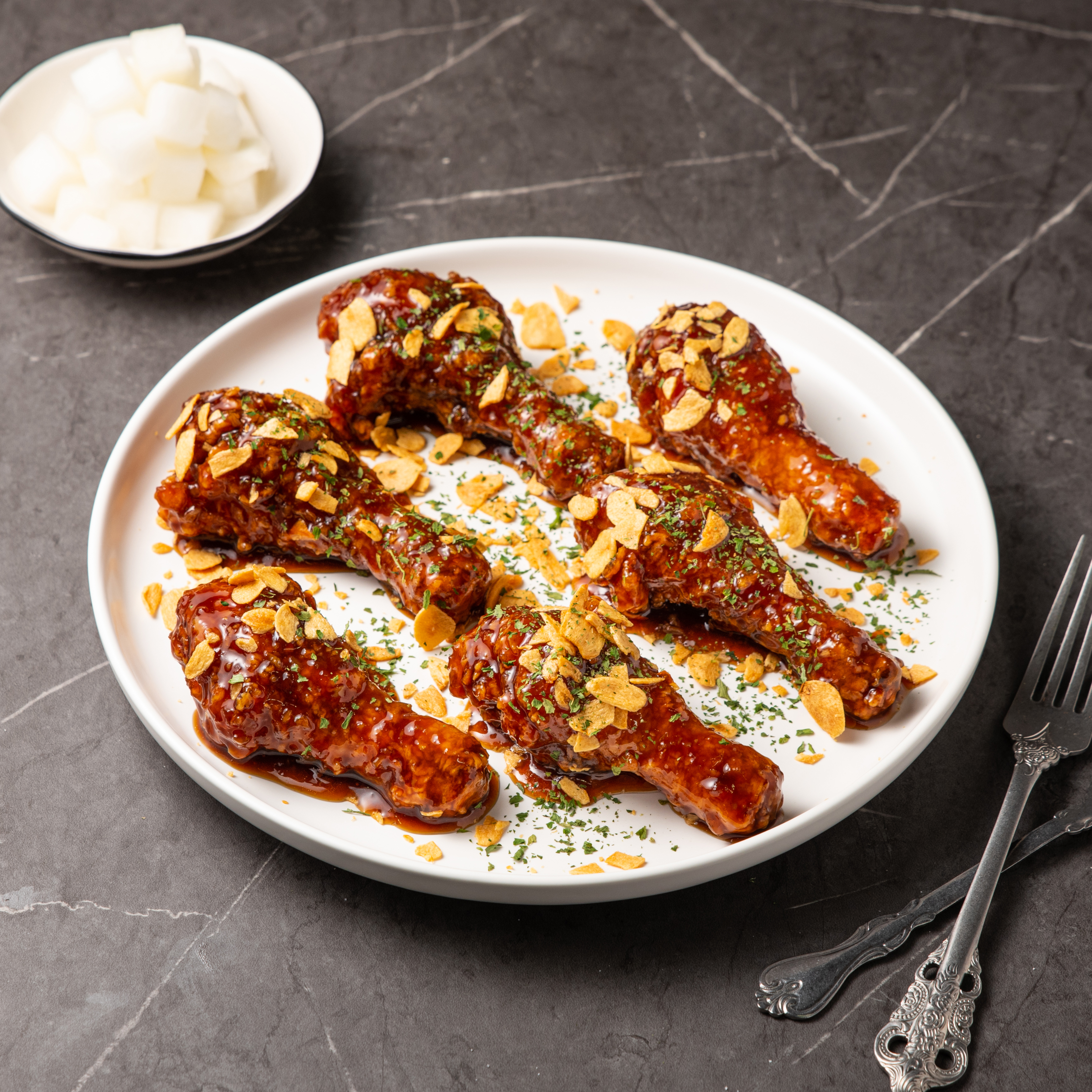 특별한 비법 소스와 함께 조리해 더욱 맛있고 바삭한 식감을 자랑합니다.