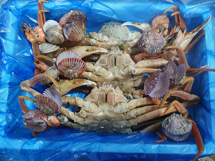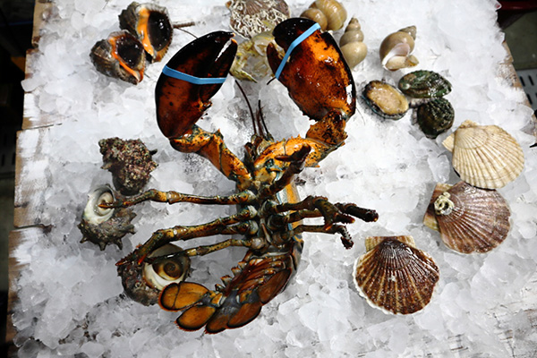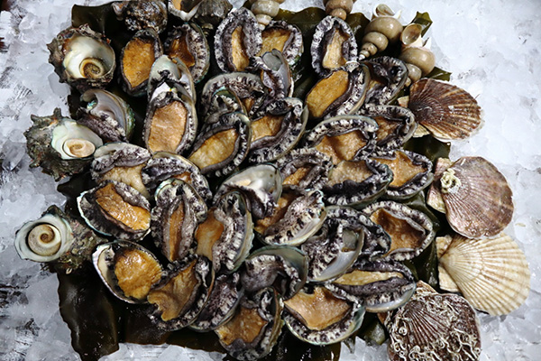 전복(--산), 문어(--산), 대하(--산), 킹크랩(--산), 대게(--산), 어패류(--산)