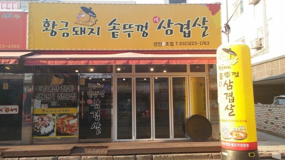 안녕하세요. 삼겹살 전문점 '황금돼지솥뚜껑삼겹살' 입니다.