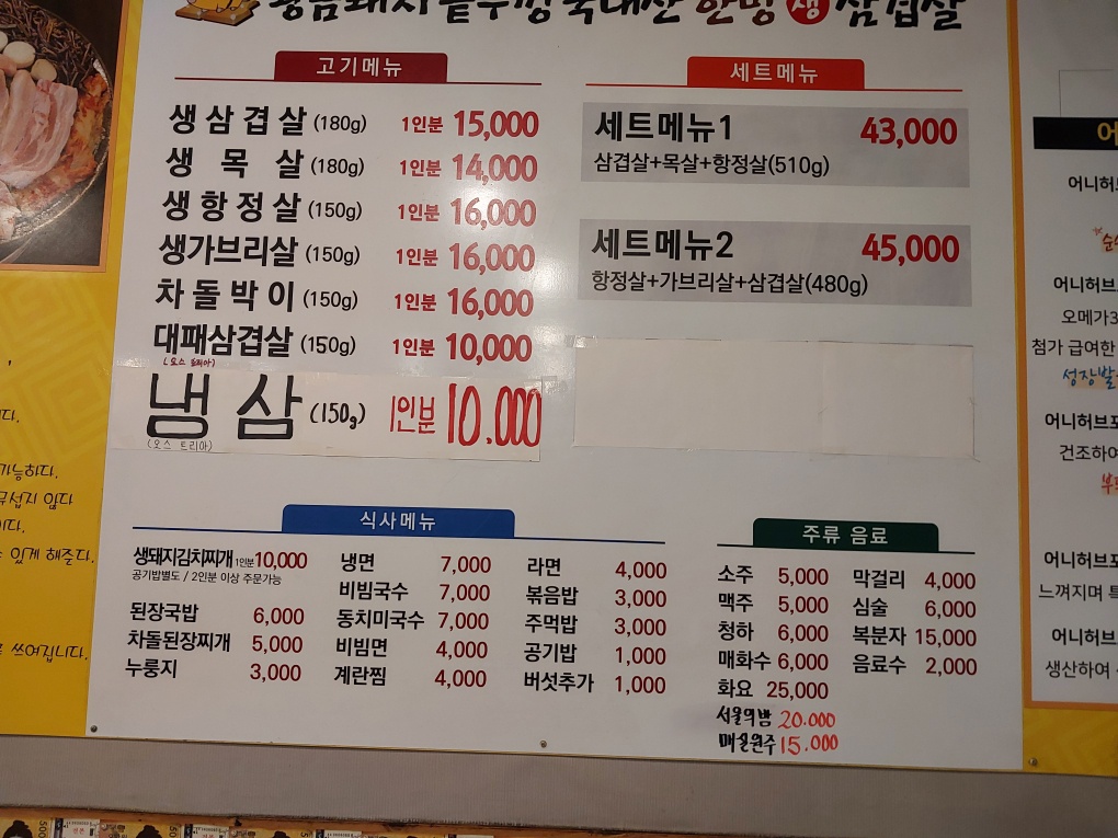* 삼겹살 / 항정살 / 목살