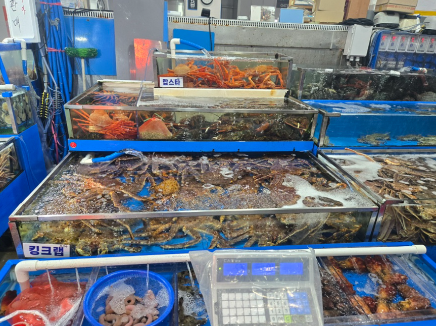 활어회-국내산, 킹크랩-러시안, 대게-러시아, 랍스타-캐나다산