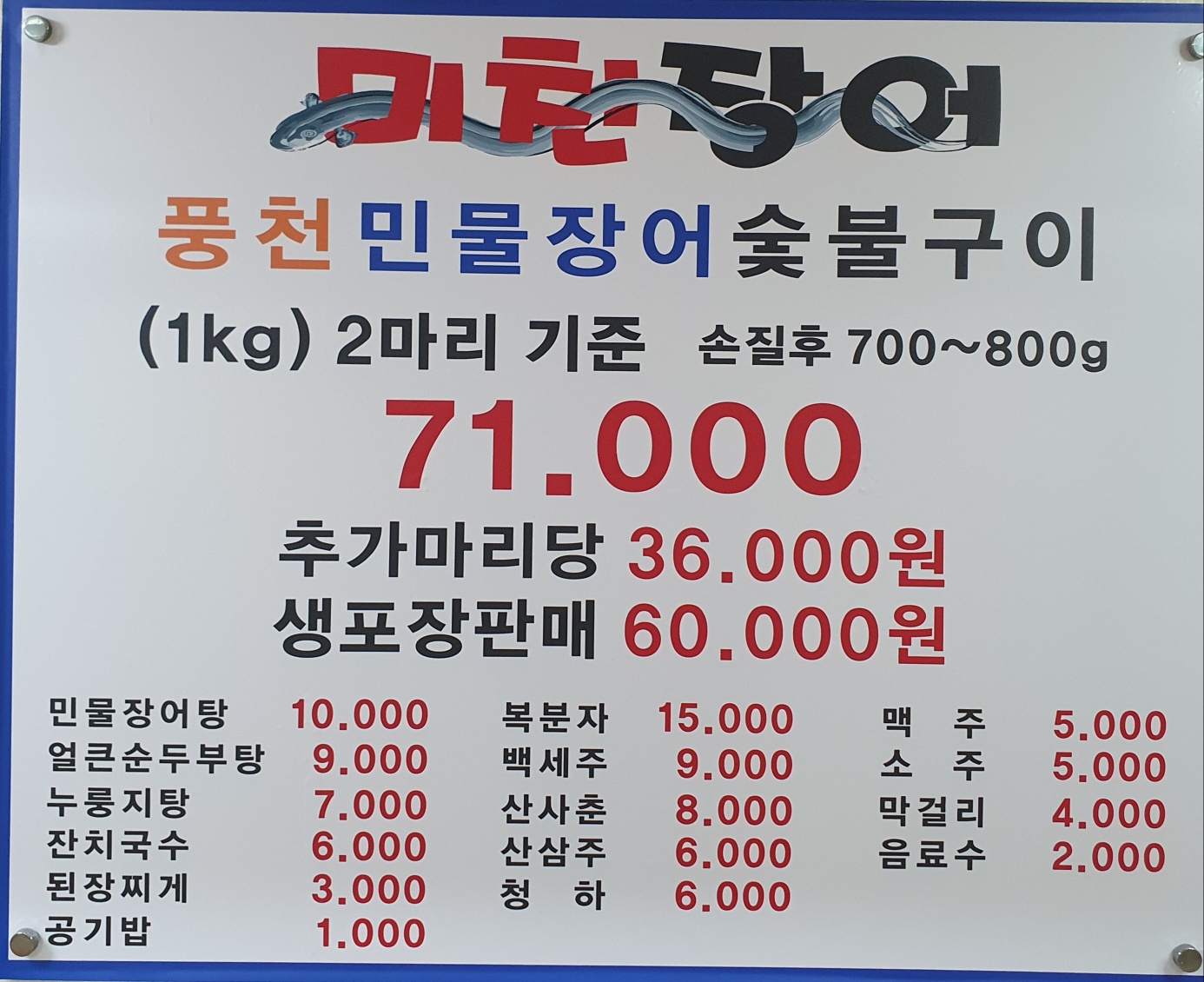 싱싱한 장어로 원기 회복하고 가세요!
