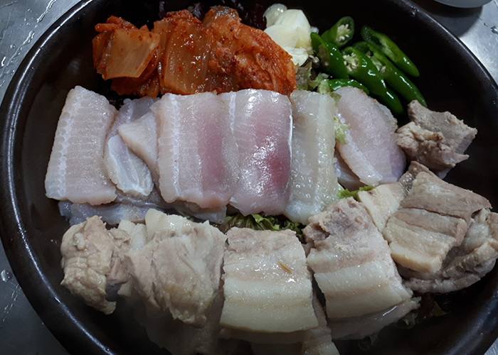 홍어회 + 삼겹살 수육 + 묵은지