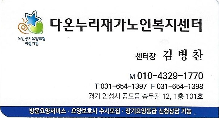 믿을 수 있는 장기 요양 전문 업체를 찾으신다면 다온누리재가노인복지센터로 연락 주세요.