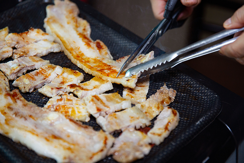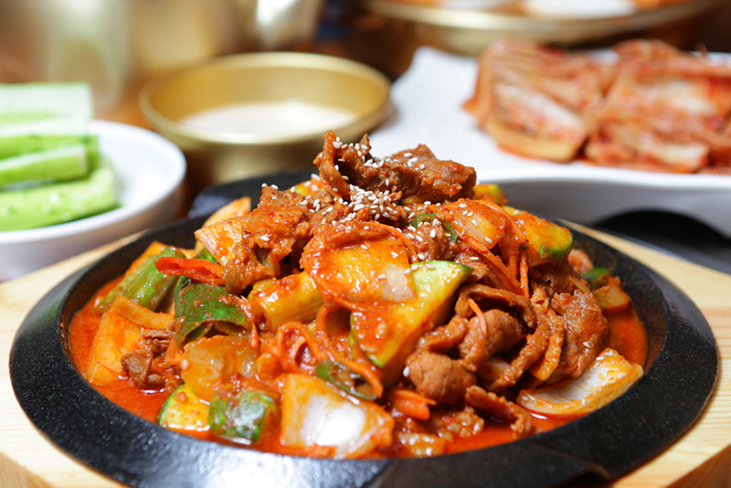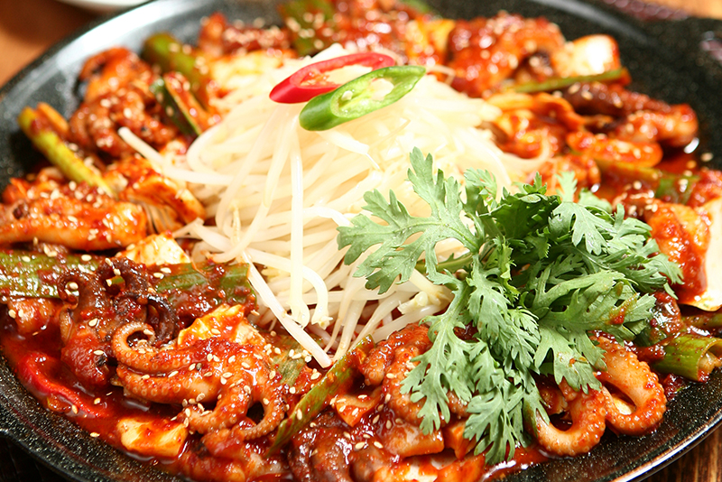 무쇠솥뚜껑 생삼겹살 · 고추장 생삼겹살 · 매운낙지 · 낙지와삼겹살 · 오징어와삼겹살 등의