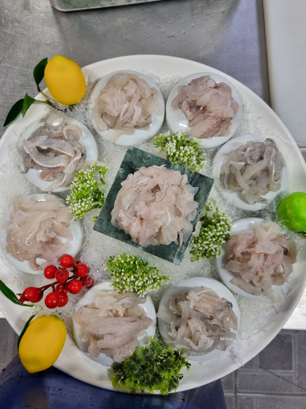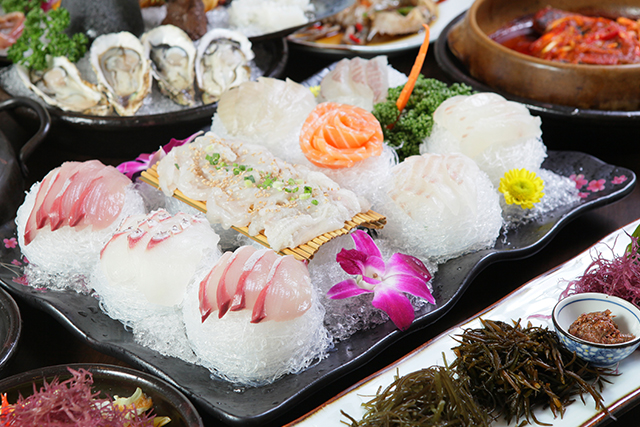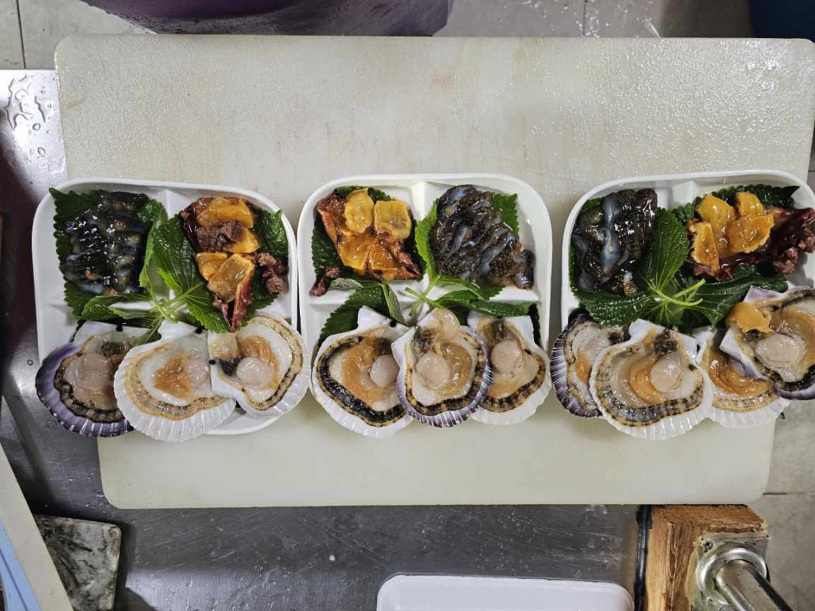 성대, 햇대기 외 활어, 우럭, 농어, 참돔, 능성어, 산낙지, 개불, 해삼, 멍게