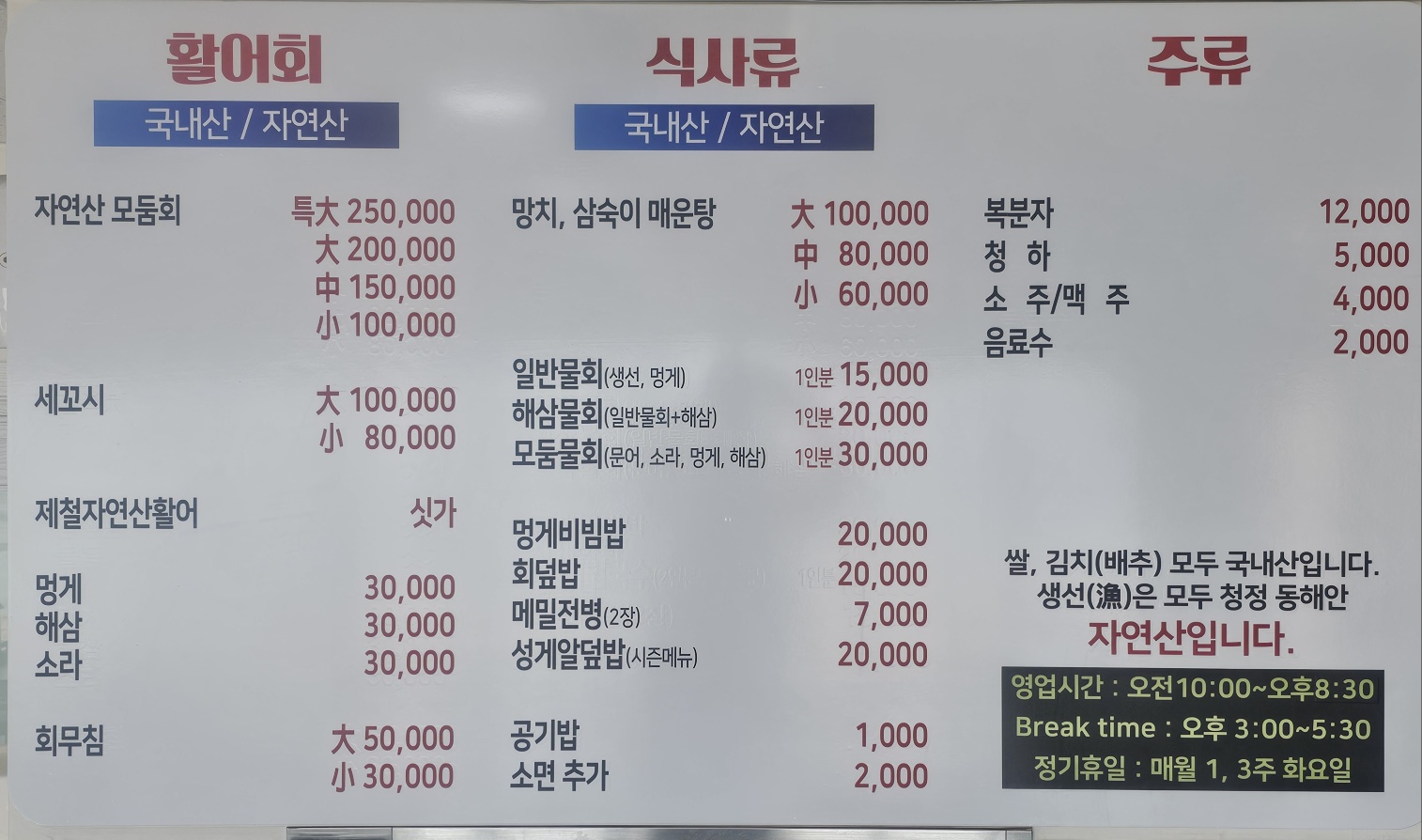 모든 생선은 청정 동해안 자연산만 취급합니다.
