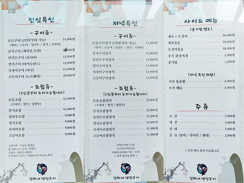 * 가자미구이, 열기구이, 고등어구이, 임연수구이