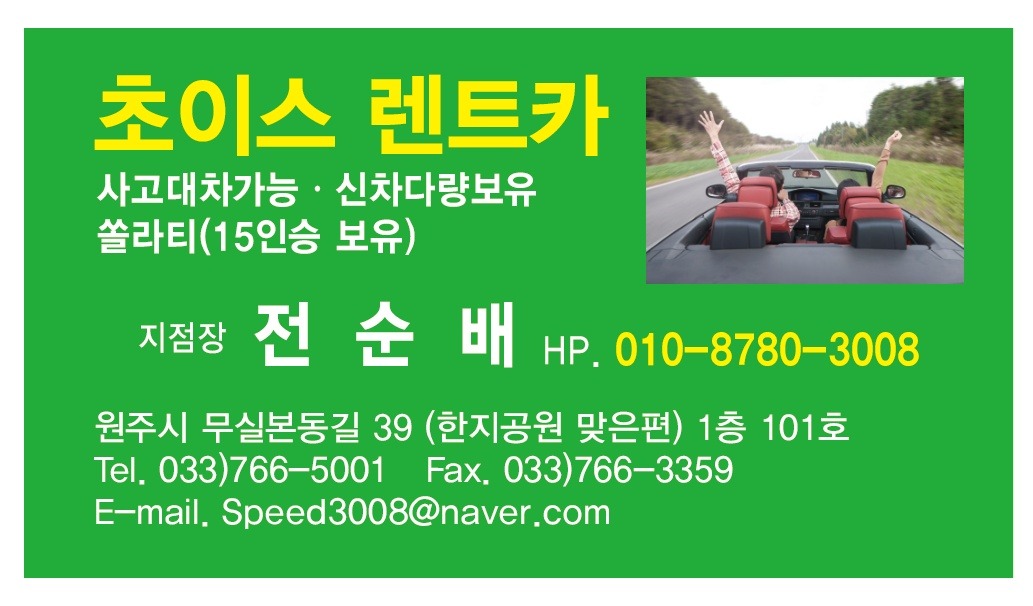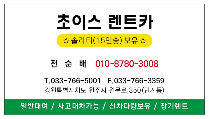 가입비용 1일 1만원 / 승합차2만원 / 쏠라티3만원