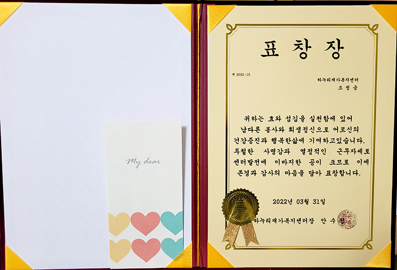 저희 하누리재가복지센터는 어르신들의 심신 안정과 부양가족의 부담을 덜어드리고자
