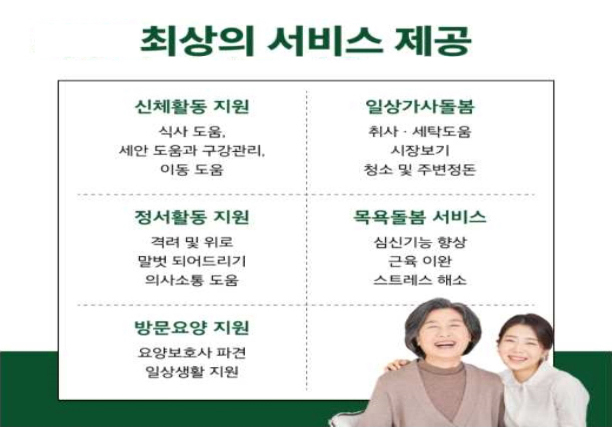 일상생활부터 요양, 목욕, 등급신청, 건강체크까지