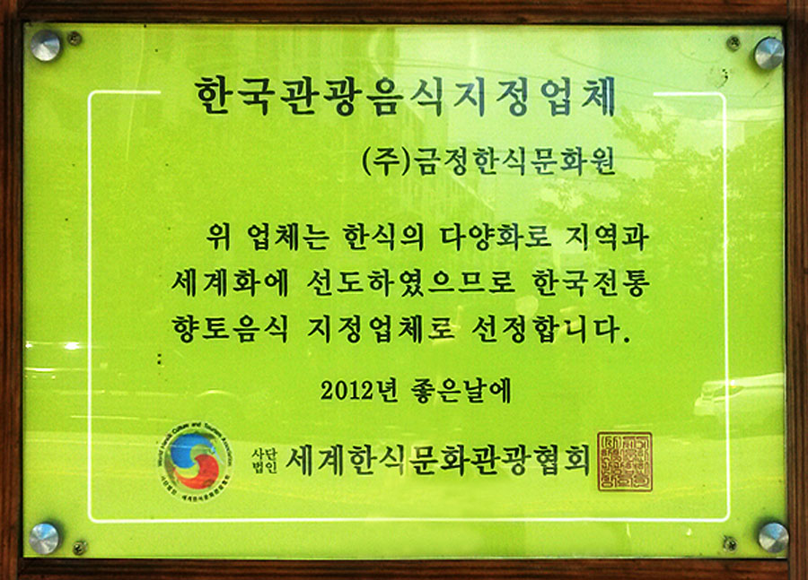 세계한식 문화관광협회 지정업소!