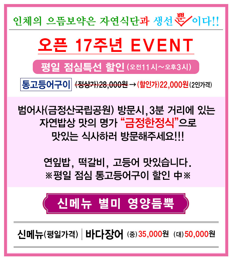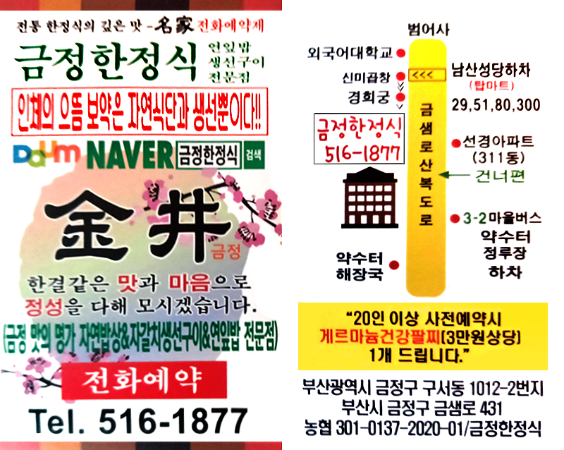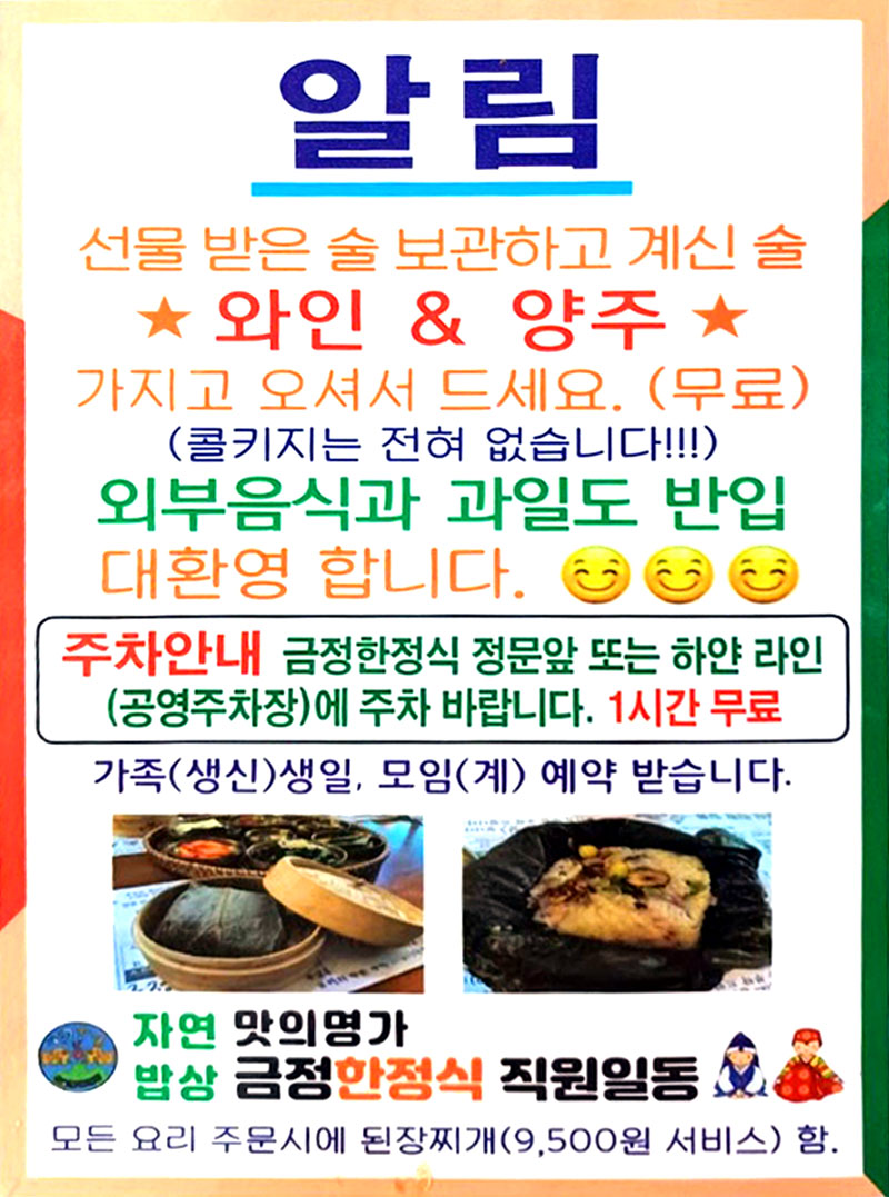 저희 "금정한정식" 많은 이용 부탁드립니다.