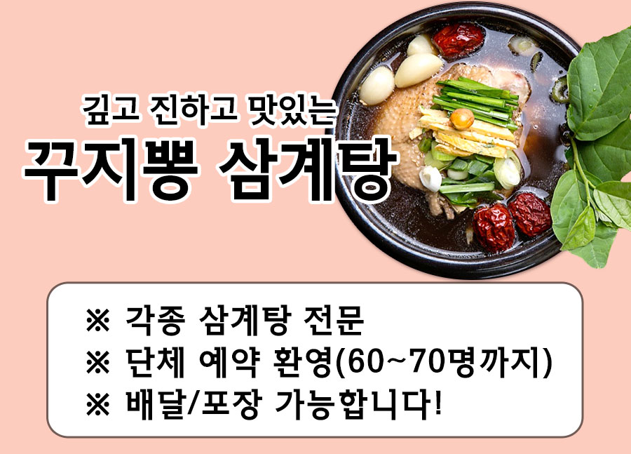 저희는 꾸지뽕삼계탕과 전복삼계탕 등 다양한 종류가 준비되어 있습니다.