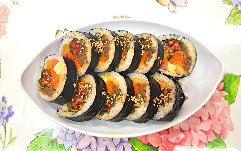 좋은 재료를 가득 모아 만든 김밥 한 줄!