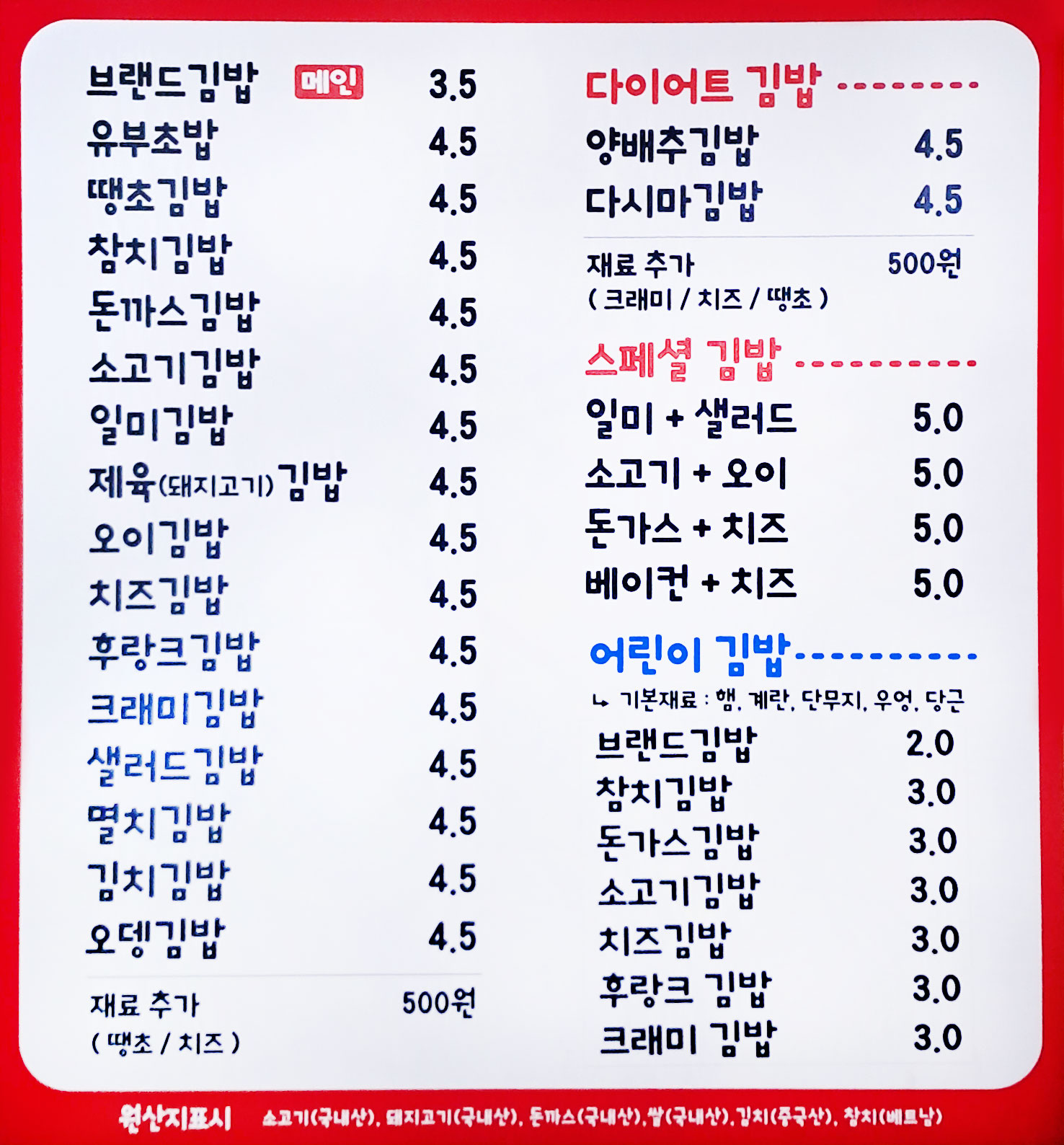 저희 브랜드김밥에는 다양하고 맛있는 각종 김밥 메뉴가 준비되어 있으며