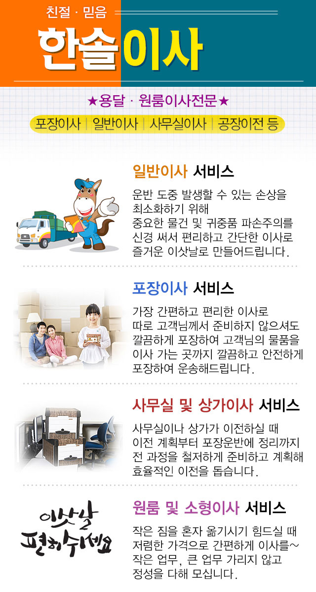 작은 이사에서 큰 이사까지 정성을 다하여 임합니다.
