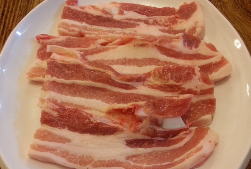돼지고기(국내산), 차돌박이(미국산), 쌀(국내산), 김치(중국산)