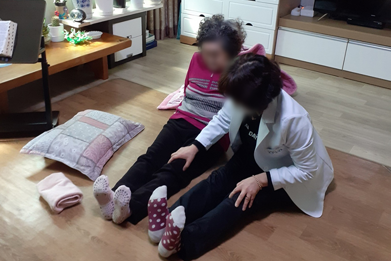 *방문간호 : 혈압, 혈당 측정, 간단한 물리치료, 관절통과 보행이 어려운 어르신 운동 및 스트레칭, 욕창간호, 경관식 주입하는 어르신 튜브교체, 유치도뇨관 교체, 치매가 있으신 어르신 인지 재활 프로그램을 실시합니다.