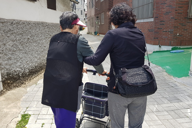 *방문요양 : 교육받은 요양보호사가 집으로 방문하여 식사준비, 주위정돈, 청소, 병원동행, 외출동행, 말벗 등의 서비스를 제공합니다.