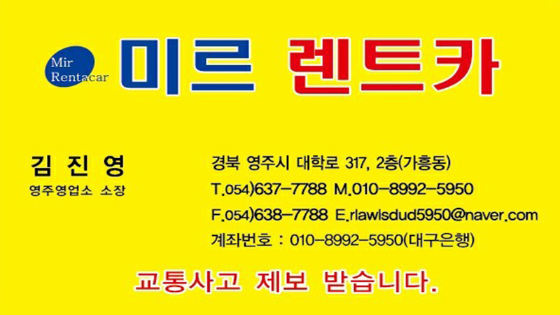 믿을 수 있는 렌터카 전문 업체를 찾으신다면 저희 미르렌트카영주영업소와 함께 하세요!