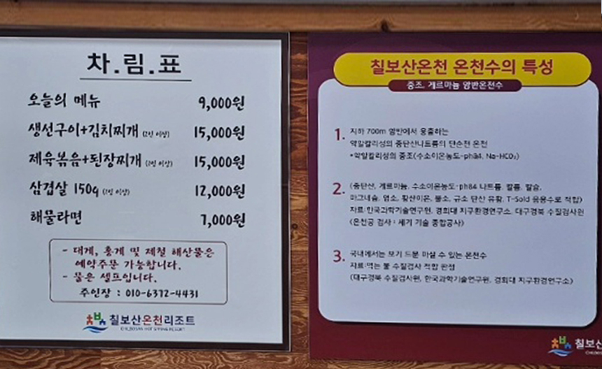 식당번호 010-6372-4431 혹은 칠보산온천리조트로 문의