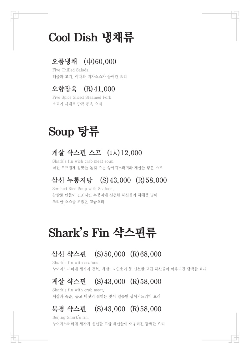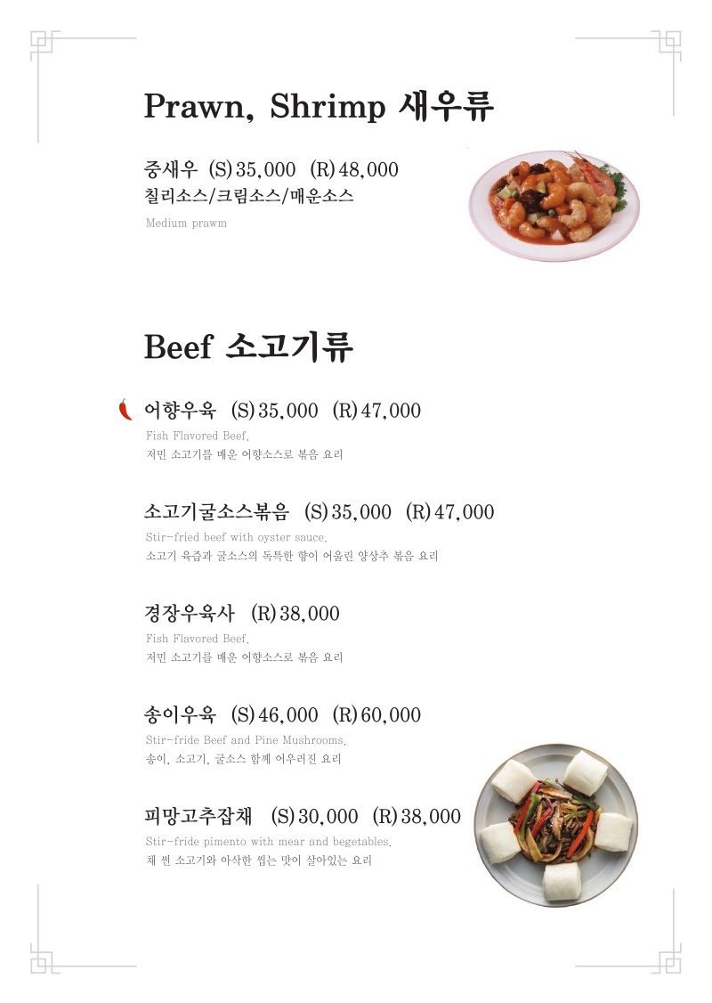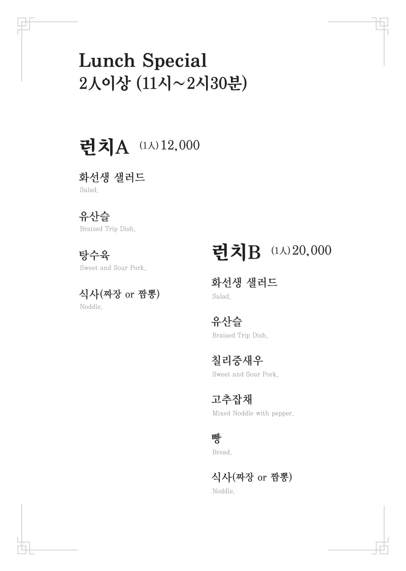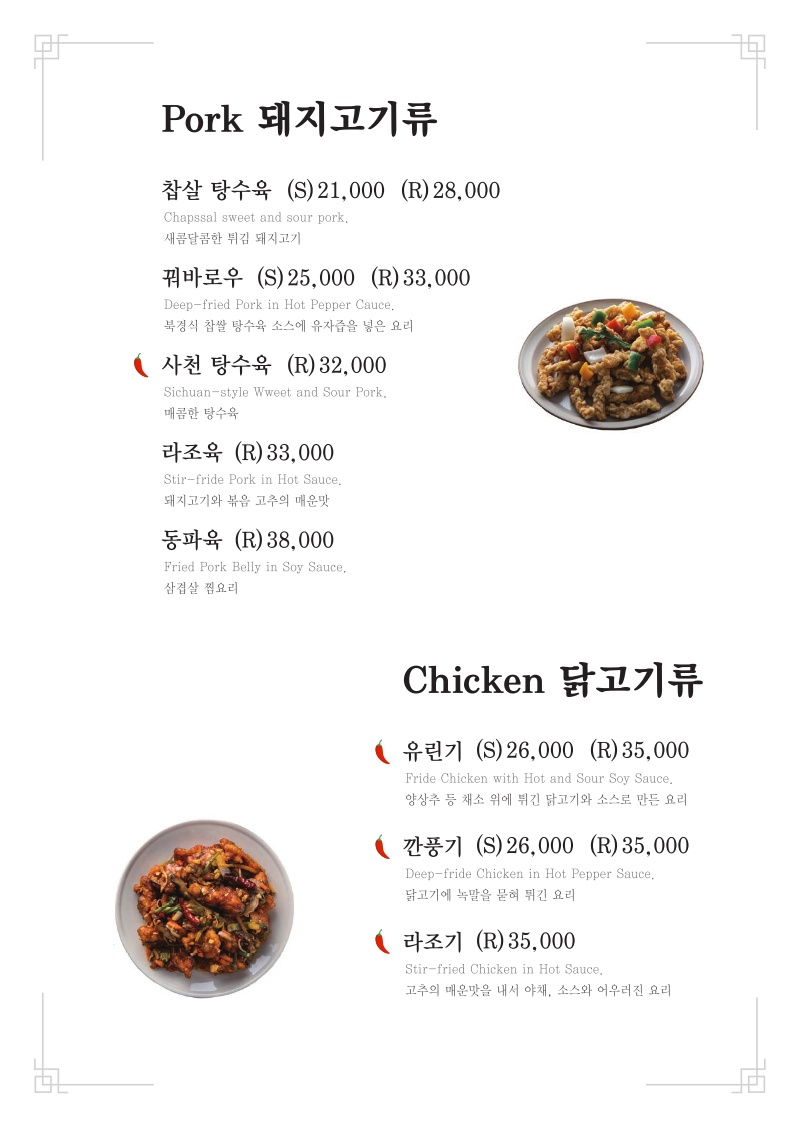 다른 중화요리집과는 차원이 다른 맛! 쉐프특선요리부터 다양한 요리와 식사류 완비!