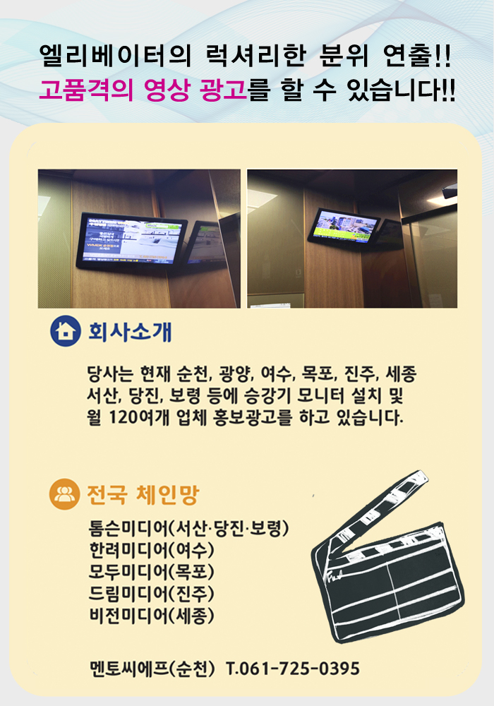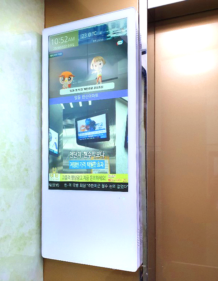 전국 아파트 엘리베이터에 모니터를직접 설치하고 운영하는 업체임