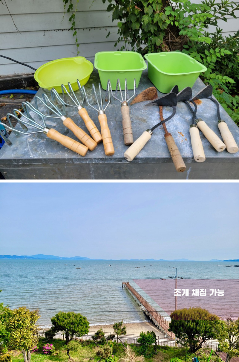 갯벌체험의 경우, 주변 어촌민들에게 피해가 가지 않게 판매를 목적으로 하지 않는 경우, 누구든지 체험할 수 있으며 저희는 고객님들을 위해 몇가지 체험도구를 구비하고 있습니다.