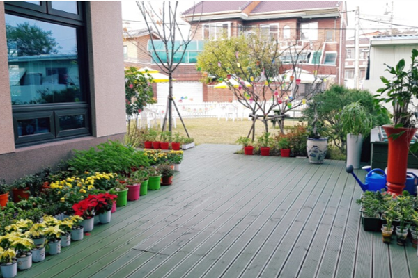 푸른 잔디밭과 효덕 텃밭에서 직접 가꾼 친환경 채소를 제공하고