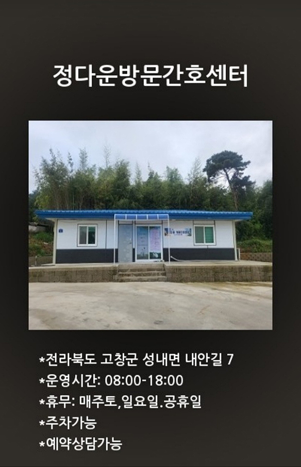 안녕하세요. '정다운방문간호센터' 홈페이지 방문을 환영합니다.
