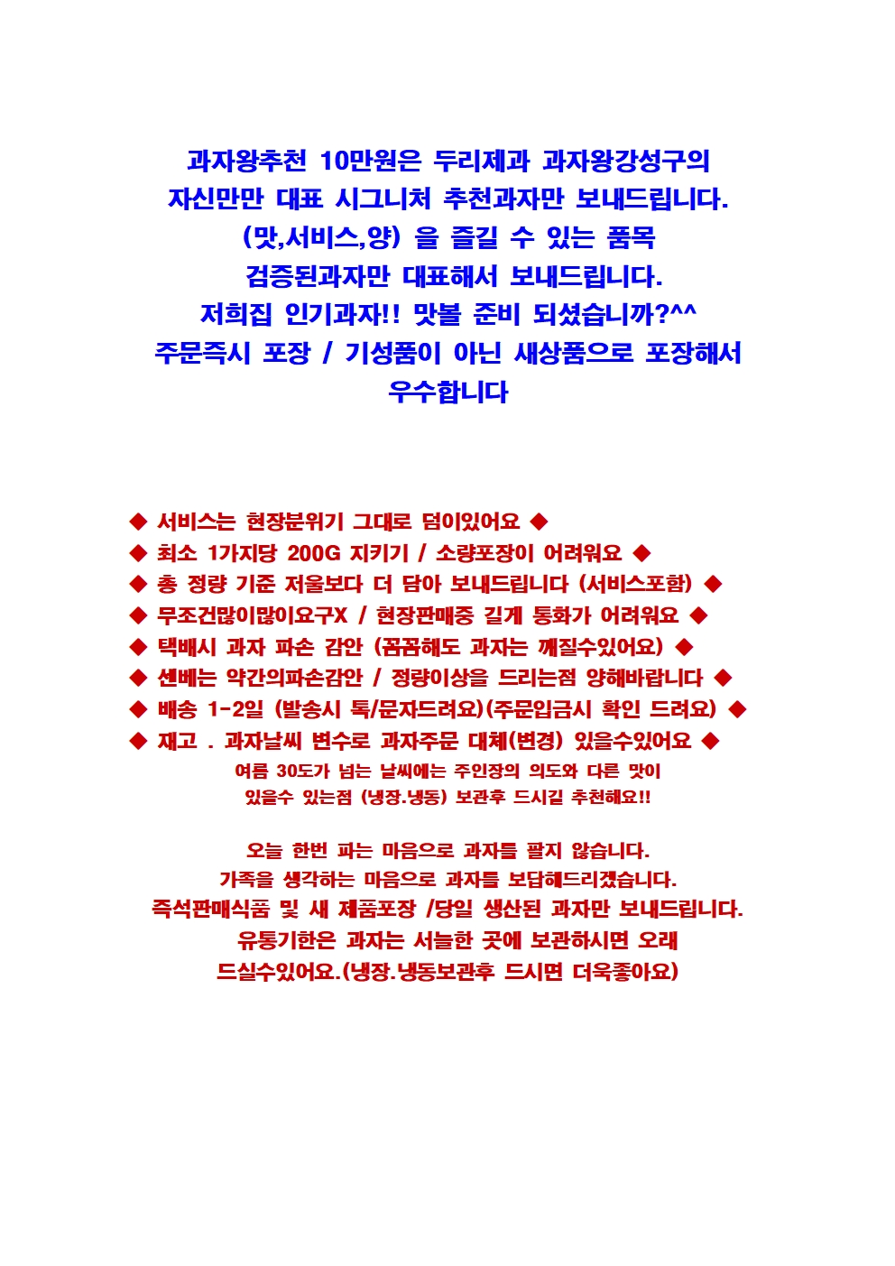 가족이 먹는다는 마음으로 정직하게 과자를 만들고 판매하겠습니다.