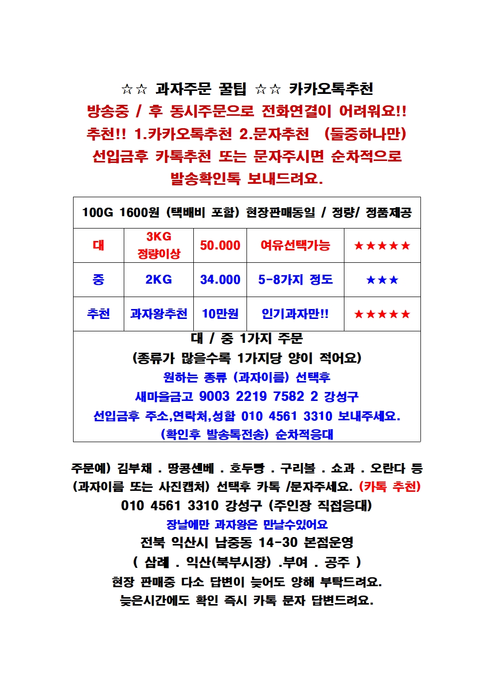 시장 장날마다 고객님께 신선하고 정량의 제품을 제공하고 있습니다.